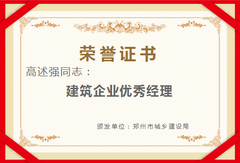 集團(tuán)公司總經(jīng)理高述強(qiáng)獲評(píng)“建筑企業(yè)優(yōu)秀經(jīng)理”。
